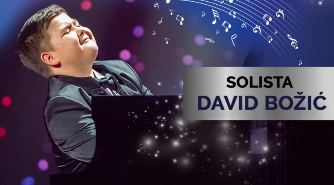 Kao solista nastupiće trinaestogodišnji David Božić. Izvešće deonicu iz Mocartovog Koncerta za klavir u d-molu.