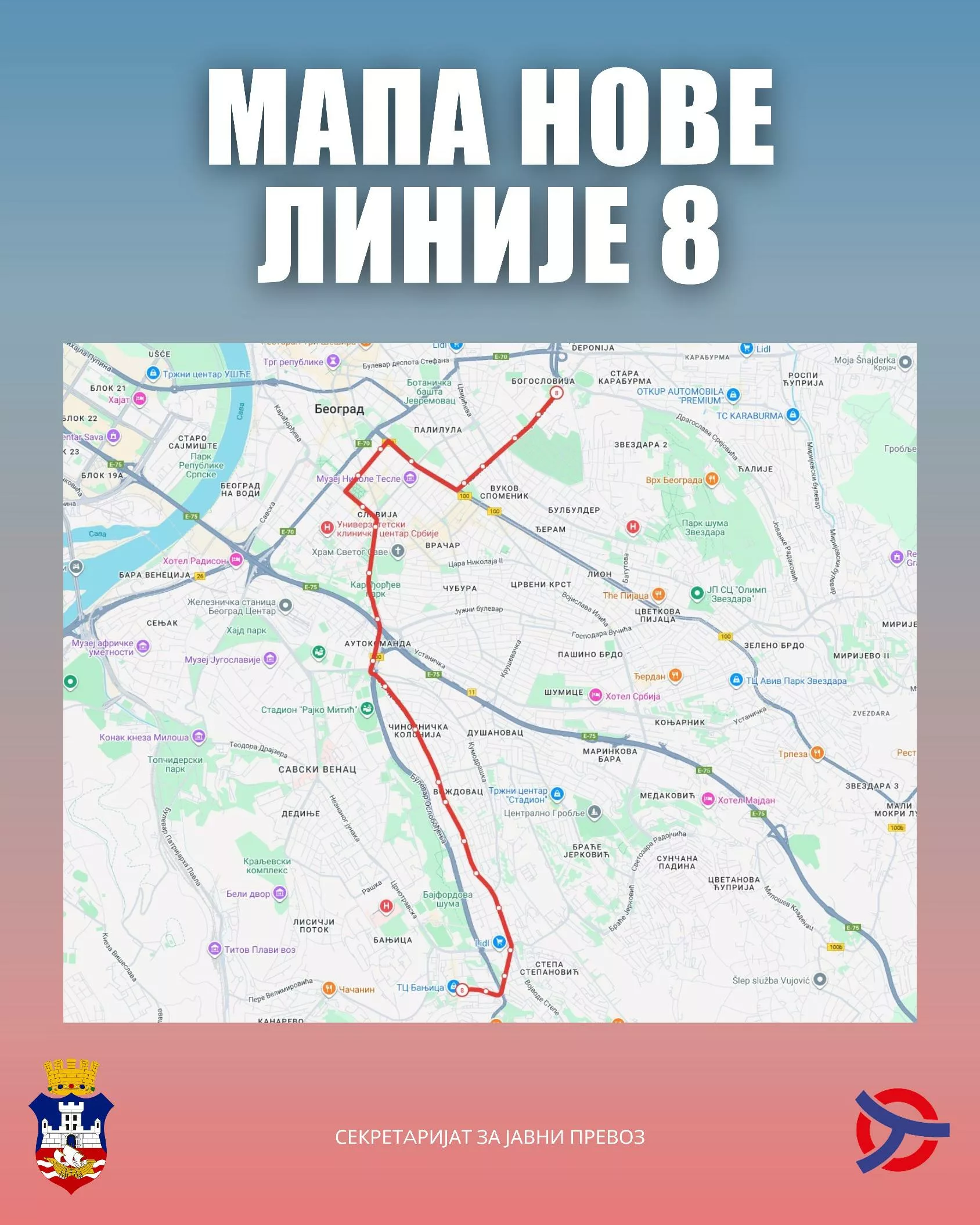 Nova tramvajska linija 8 donosi viši nivo usluge. Posebno je značajna relacija Banjica – Vukov spomenik. Grad nastavlja modernizaciju javnog prevoza.