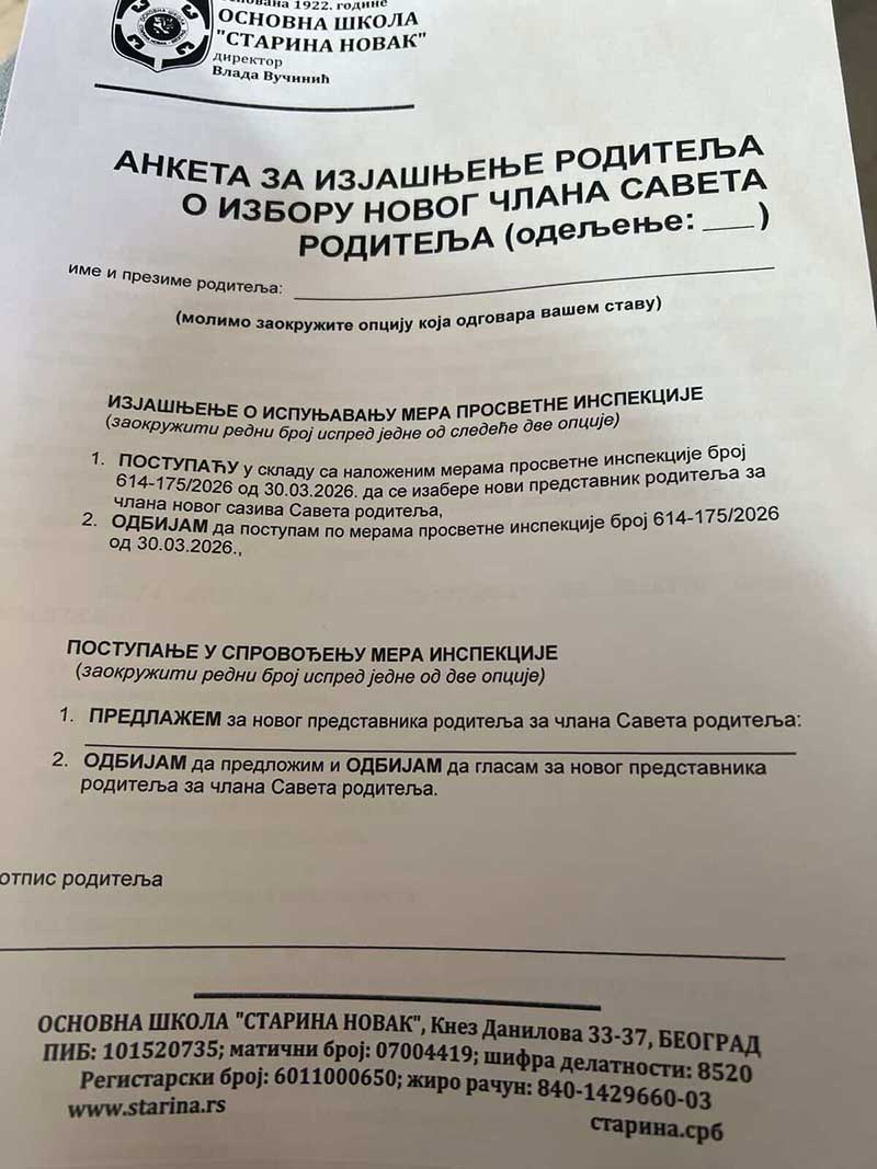 Dok se čeka zvanični zapisnik inspekcije, tenzije u školi rastu. Transparentnost i zakonitost rada škole moraju biti prioritet svih uključenih strana, kako bi se očuvalo poverenje roditelja i stabilnost obrazovnog procesa.